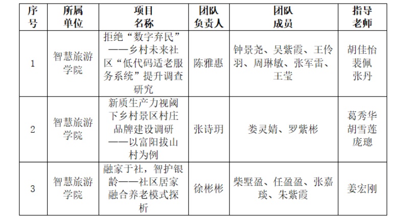 經(jīng)個(gè)人申報(bào)、各學(xué)院推薦、專家評(píng)審,根據(jù)省賽相關(guān)要求,擬推薦《拒絕“數(shù)字棄民”——鄉(xiāng)村未來社區(qū)“低代碼適老服務(wù)系統(tǒng)”提升調(diào)查研究》等3項(xiàng)作品代表浙江育英職業(yè)技術(shù)學(xué)院參加浙江省第十九屆“挑戰(zhàn)杯”大學(xué)生課外學(xué)術(shù)科技作品競(jìng)賽。現(xiàn)予以公示: