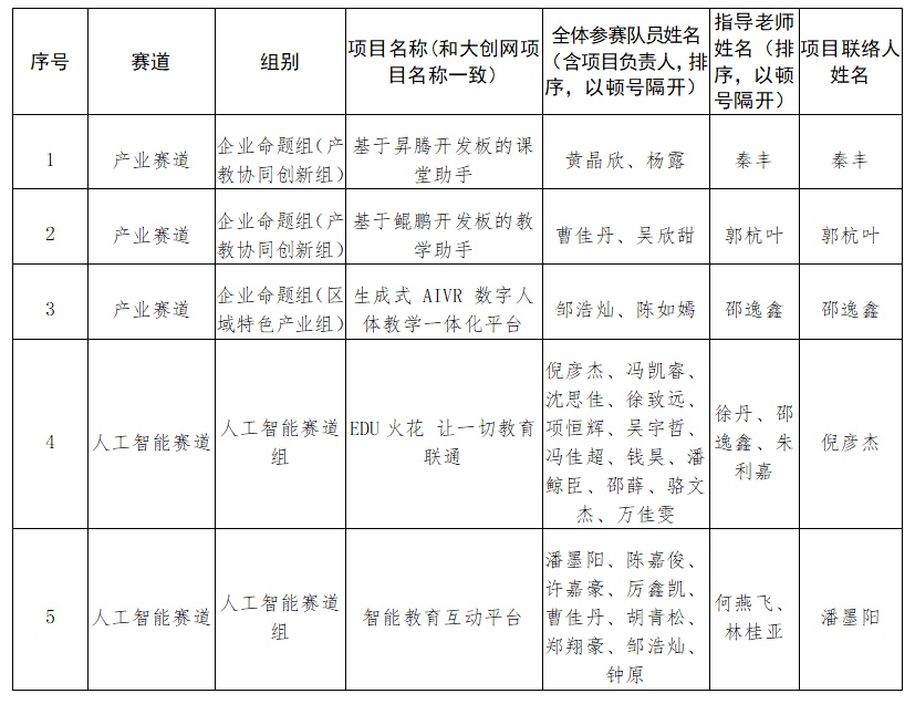 經(jīng)個(gè)人申報(bào)、各學(xué)院推薦、專家評(píng)審,根據(jù)省賽相關(guān)要求,擬推薦以下5項(xiàng)作品代表浙江育英職業(yè)技術(shù)學(xué)院參加浙江省國際大學(xué)生創(chuàng)新大賽項(xiàng)目。現(xiàn)予以公示: