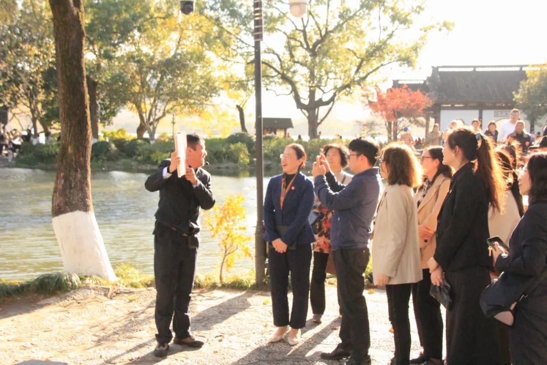 杭州市西湖游船有限公司黨總支副書記、總經(jīng)理何永紅,黨總支委員、副總經(jīng)理、工會主席孫艷,黨總支干事、工會副主席王曉斕,人力資源部經(jīng)理余長金,智慧旅游學(xué)院黨總支書記、院長黃華,黨總支副書記、院長助理張丹,黨總支委員、教工支部書記黃靜,以及校企雙方全體黨員、實(shí)習(xí)生代表,齊聚西湖紅舫,尋偉人足跡,憶崢嶸歲月,品詩畫江南,話美好生活。