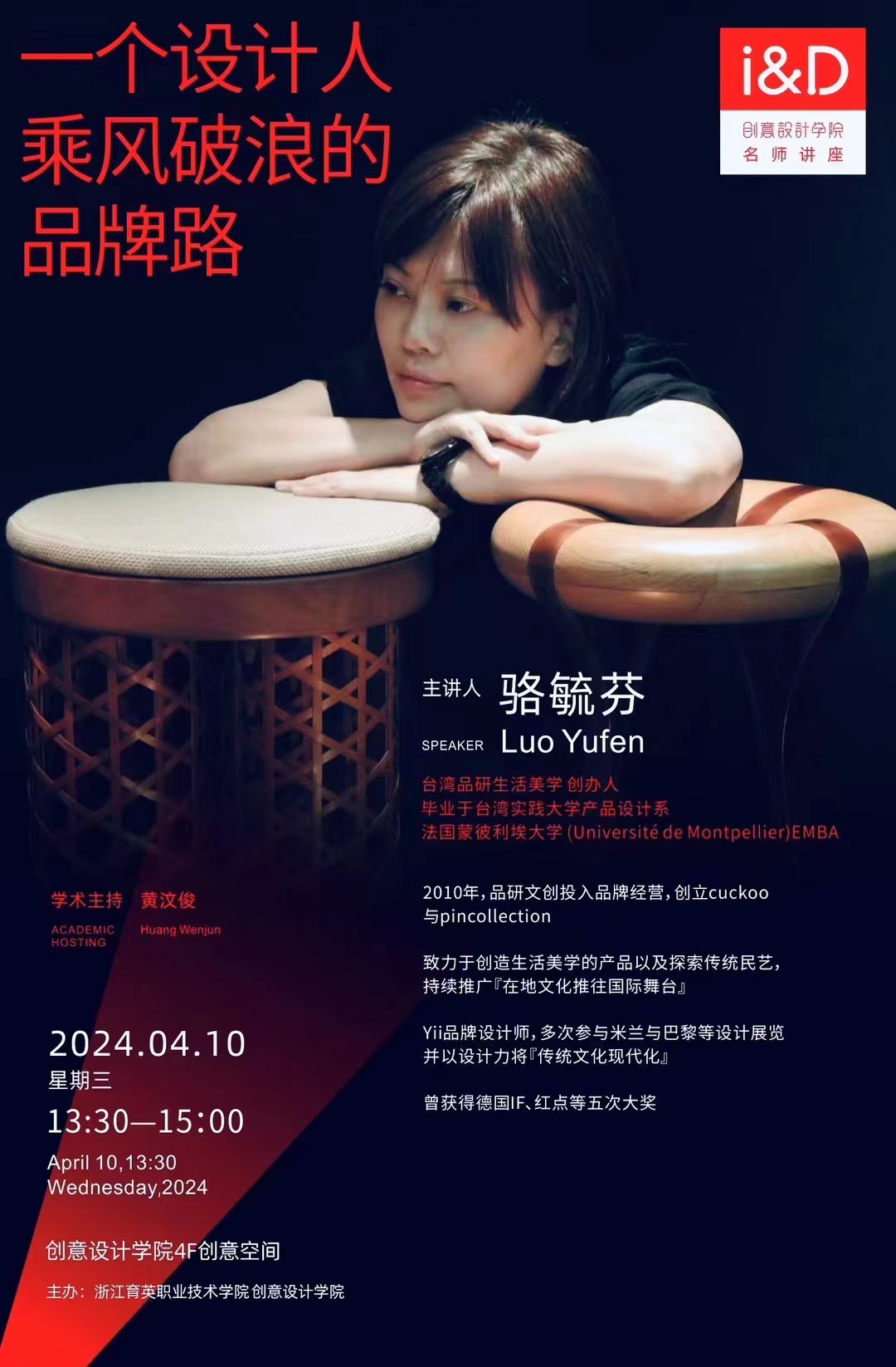 2024年4月10日下午,品研生活創(chuàng)始人駱毓芬在創(chuàng)意設(shè)計(jì)學(xué)院四樓創(chuàng)意空間與在場的學(xué)生和專業(yè)老師分享了她的成長故事和成就。本次講座旨在探討學(xué)習(xí)駱毓芬的人生成長之道以及在產(chǎn)品設(shè)計(jì)領(lǐng)域不斷邁向成功的關(guān)鍵因素,吸引了眾多產(chǎn)品藝術(shù)設(shè)計(jì)專業(yè)的學(xué)生和教師前來傾聽,引發(fā)了他們對未來的深入思考。
