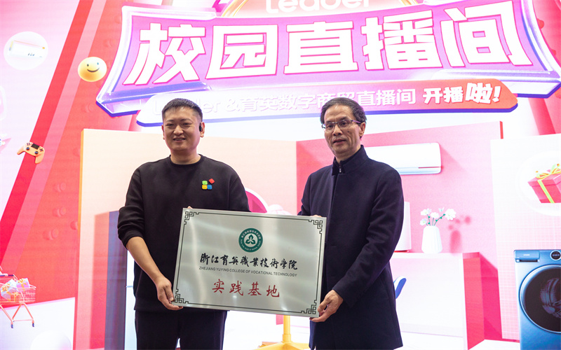 12月15日,海爾智家全國(guó)首個(gè)校園直播基地啟動(dòng)儀式在浙江育英職業(yè)技術(shù)學(xué)院舉行。校長(zhǎng)丁金昌,海爾智家Leader品牌總經(jīng)理張丹,Leader品牌運(yùn)營(yíng)商浙江百誠(chéng)集團(tuán)常務(wù)副總裁喻煥,數(shù)字商貿(mào)學(xué)院院長(zhǎng)歐陽駒,黨總支副書記、副院長(zhǎng)姜蕾,院長(zhǎng)助理章雁峰,教務(wù)部主任羅妮娜等出席,數(shù)字商貿(mào)學(xué)院師生代表參加啟動(dòng)儀式。校企雙方相互授牌。張丹和喻煥分別為12位校園大使和11位校園主播頒發(fā)證書。