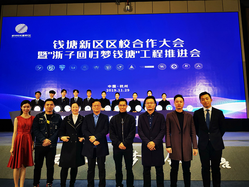 2019年11月29日上午,杭州錢塘新區(qū)區(qū)校合作暨“浙子回歸夢錢塘”工程推進大會在大創(chuàng)小鎮(zhèn)國際創(chuàng)博中心召開。區(qū)內(nèi)14所高校主要負責人,區(qū)內(nèi)校企合作企業(yè)代表及各創(chuàng)新園區(qū)、平臺負責人,高層次人才,企業(yè)代表,校友企業(yè)代表,師生代表以及中央、省、市、新區(qū)媒體400多人參會。