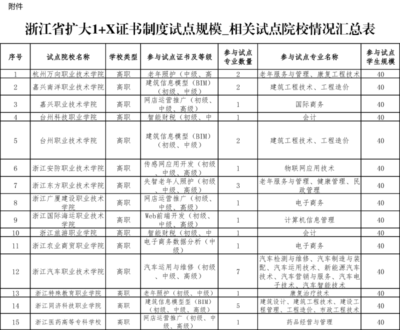 擴大1+X證書制度試點規(guī)模_相關(guān)試點院校情況匯總表(含試點人數(shù))