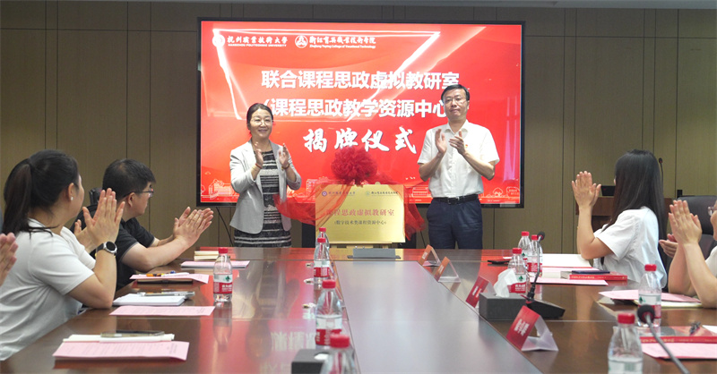 賴(lài)明誠(chéng)、謝鑫為聯(lián)合課程思政虛擬教研室(課程思政教學(xué)資源中心)揭牌。