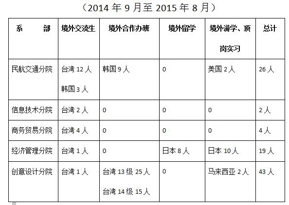 學(xué)院境外交流學(xué)生數(shù)據(jù)統(tǒng)計(2014年9月-2015年8月)