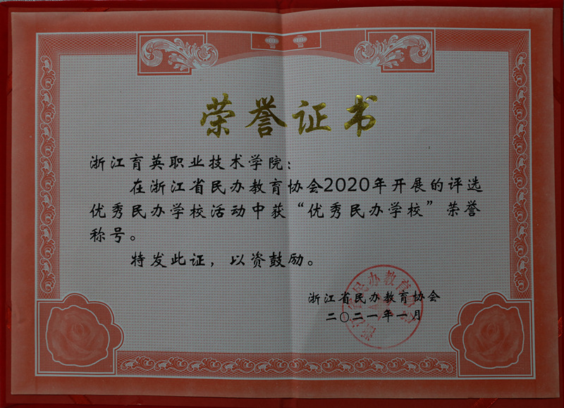 學(xué)院2021年獲得浙江省優(yōu)秀民辦學(xué)校稱號
