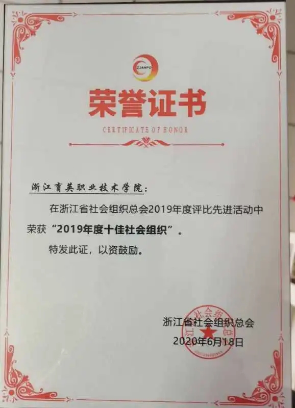 學(xué)院獲得2019年度浙江省十佳社會組織稱號