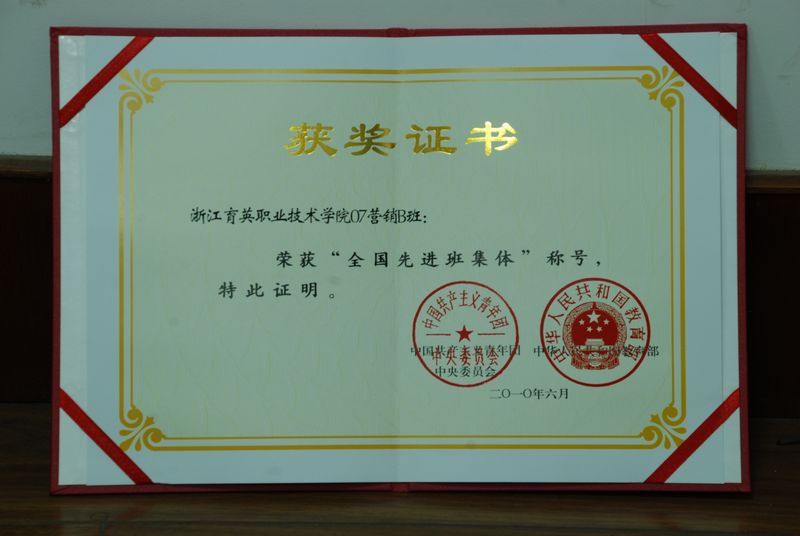 學(xué)院07營(yíng)銷B班2010年榮獲全國(guó)先進(jìn)班集體稱號(hào)