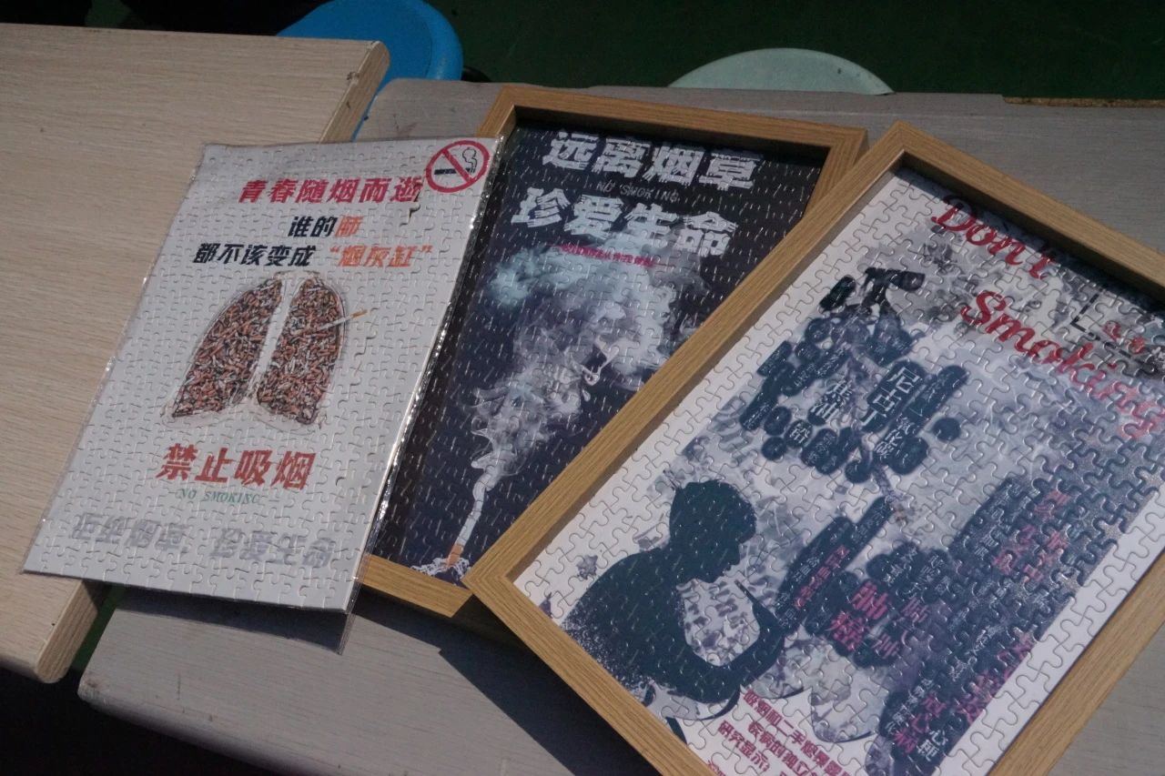 被打散的禁煙標(biāo)語拼圖,在同學(xué)們的巧手下重獲新生,“拒絕二手煙”“守護(hù)呼吸健康”等口號躍然紙上。