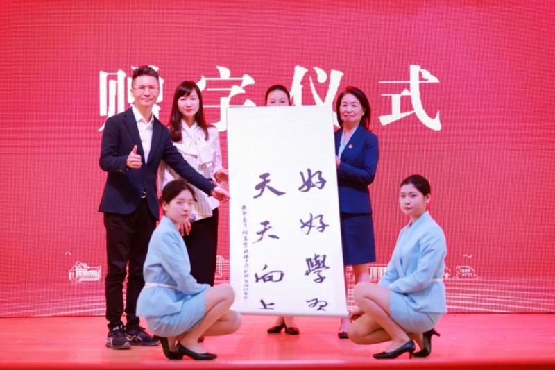 校友會(huì)常務(wù)副會(huì)長(zhǎng)孫照和校友褚麗黎代表全體育英校友向?qū)W校贈(zèng)送了書(shū)法作品。“好好學(xué)習(xí),天天向上”八個(gè)大字,讓大家牢記習(xí)近平總書(shū)記的殷殷囑托,在自己的專業(yè)領(lǐng)域里有所作為,努力成為一名優(yōu)秀的職業(yè)人。