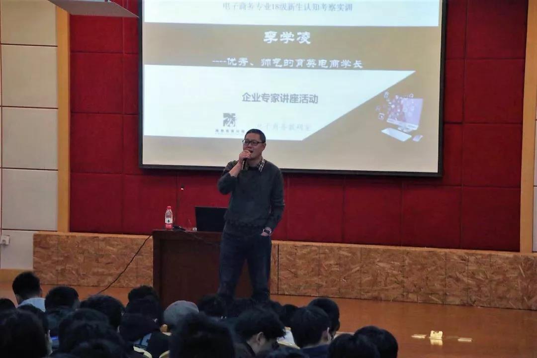 2018年12月13日14:00,電商大講堂暨新生認(rèn)知考察實(shí)訓(xùn)講座在三樓學(xué)術(shù)報(bào)告廳隆重舉行。本次講座特邀優(yōu)秀校友李學(xué)凌——杭州首展科技有限公司市場(chǎng)總監(jiān)(育英學(xué)院電子商務(wù)專業(yè)09屆畢業(yè)生,曾擔(dān)任阿里巴巴有限公司溫州區(qū)域經(jīng)理)。與會(huì)人員有:商貿(mào)分院書記王賢軍老師、電商教研室全體教師,18電商專業(yè)300多名學(xué)生。