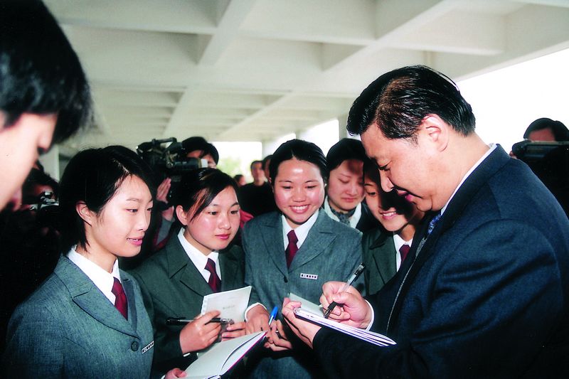 2003年4月12日,時任浙江省委書記習近平視察浙江育英職業(yè)技術學院