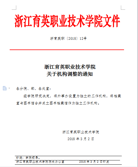 浙江育英職業(yè)技術學院 關于機構調整的通知