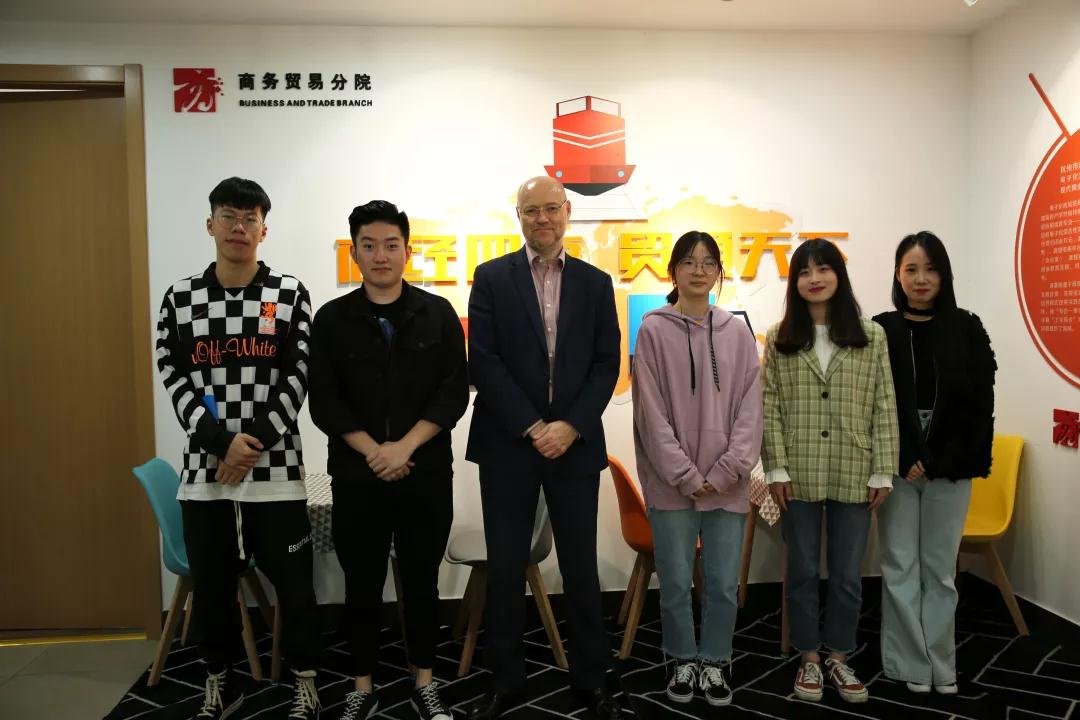 上午11點(diǎn)鐘,密德薩斯大學(xué)代表團(tuán)來(lái)到跨貿(mào)基地二樓會(huì)議室和商務(wù)貿(mào)易分院的五名專升碩預(yù)科班的學(xué)生見(jiàn)面。Paul Kirk 不僅是密德薩斯大學(xué)語(yǔ)言及短期課程中心總監(jiān)兼國(guó)際辦公室副主任,而且具有28年的豐富英語(yǔ)教學(xué)經(jīng)驗(yàn)。他先后在8個(gè)不同的國(guó)家工作過(guò),曾任英國(guó)劍橋雅思考官、英國(guó)劍橋雅思考官培訓(xùn)師,具有豐富的劍橋雅思教學(xué)經(jīng)驗(yàn)和測(cè)評(píng)經(jīng)驗(yàn)。Paul Kirk給商務(wù)貿(mào)易分院預(yù)科班的學(xué)員們做了一個(gè)多小時(shí)的專題講座,分享寶貴的應(yīng)考經(jīng)驗(yàn),鼓勵(lì)同學(xué)們努力學(xué)習(xí)、早日通過(guò)雅思考試、順利留學(xué)英國(guó),并親切地回答了學(xué)生們提出的相關(guān)問(wèn)題。