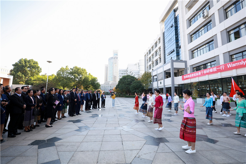 11月15日上午,老撾公安部黨委副書記、副部長貢通·蓬維吉,老撾國家主席辦公廳黨委副書記、副部長佩沙蒙·潘塔馮,老撾沙耶武里省委副書記、省人民議會主席宋里·百喬,老撾國防部黨委常委、副部長翁西·顯蘇,老撾中聯(lián)部黨委委員、副部長宋迪·本庫等省部級高級干部研修班一行25人,來學(xué)院考察交流。