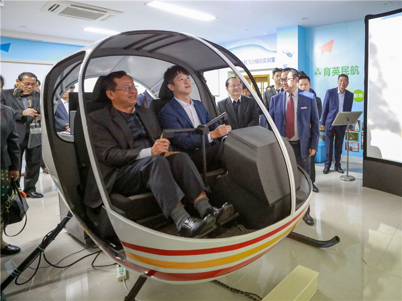考察團(tuán)一行參觀了330空客全真模擬客艙服務(wù)實(shí)訓(xùn)艙、R22直升機(jī)模擬實(shí)訓(xùn)艙、跨貿(mào)實(shí)訓(xùn)基地、校史館等。