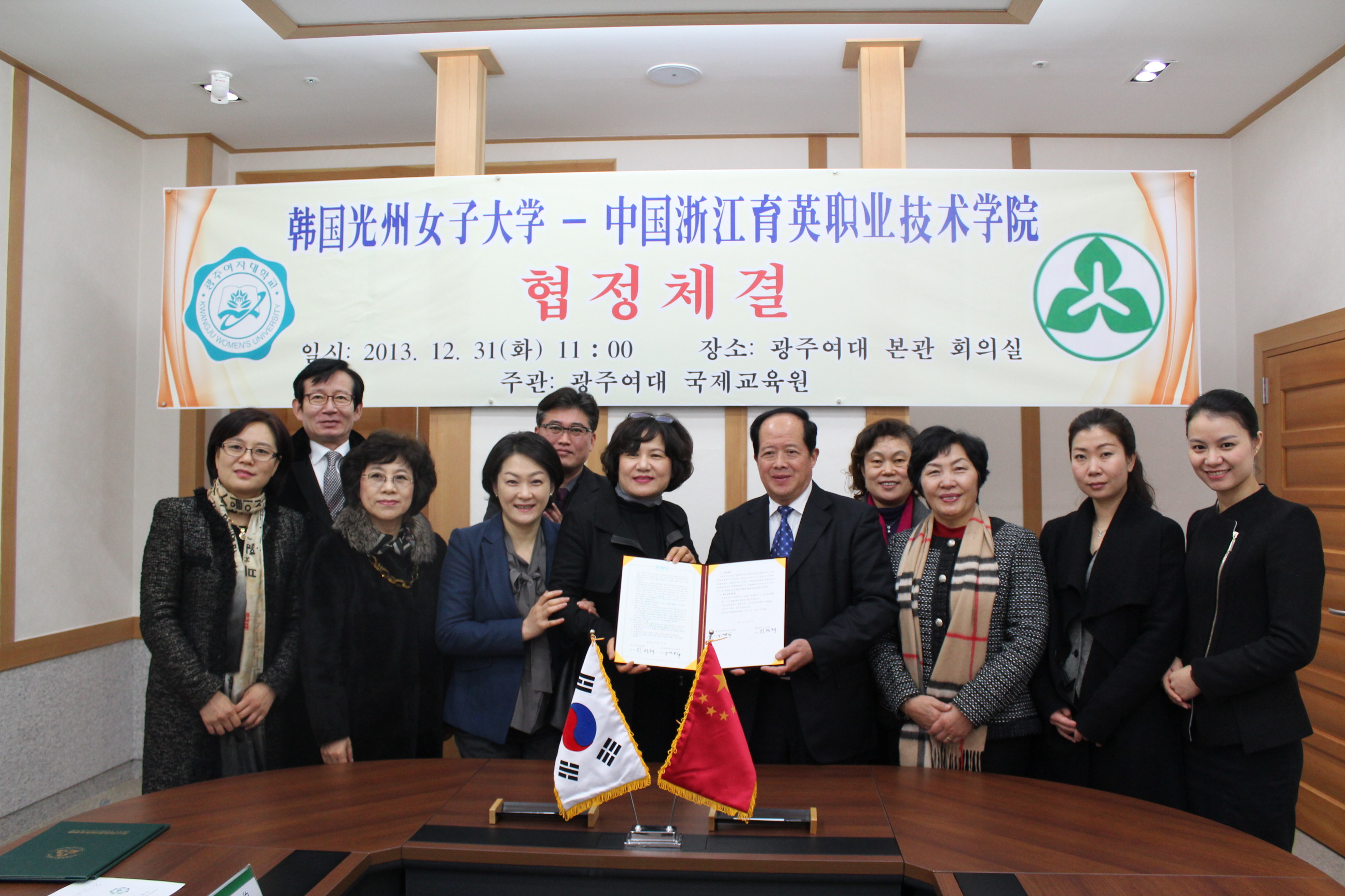 2013年12月,洪致平院長與韓國光州女子大學(xué)李善宰校長簽署友好交流合作協(xié)議