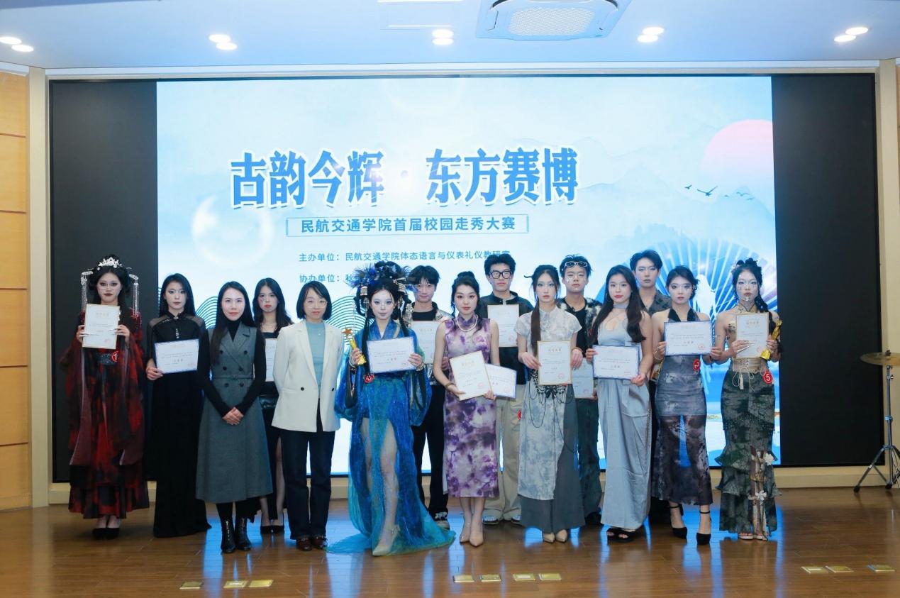 評(píng)委們從服裝設(shè)計(jì)、走秀技巧、舞臺(tái)感染力及整體表現(xiàn)等多個(gè)維度對(duì)選手進(jìn)行評(píng)審。經(jīng)過激烈角逐,獎(jiǎng)項(xiàng)漸次揭曉:來自24空五D的虞舒瀅榮獲一等獎(jiǎng)及最佳人氣獎(jiǎng);24直播B的沈胡菲與24空五C的屈舒寧同獲二等獎(jiǎng);24空五C的趙寧寧、24空五B的趙子涵及24軌道G的張芮琪獲三等獎(jiǎng)。此外,24空五D的祁一珂摘得最佳風(fēng)采獎(jiǎng),24空五D的張耀尹獲最佳創(chuàng)意獎(jiǎng),24空乘C的王筱雅與24空五A的肖蝶等同學(xué)也獲得優(yōu)勝獎(jiǎng)。