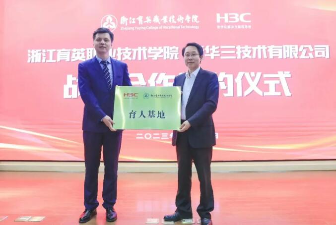 戰(zhàn)略合作簽約儀式教師企業(yè)實(shí)踐流動(dòng)站掛牌(育英·新華三)