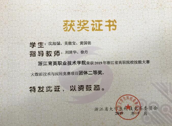 ??“以賽促教、賽教結(jié)合”是本專業(yè)的特色之一。大數(shù)據(jù)專業(yè)學(xué)生先后獲全國大學(xué)生計(jì)算機(jī)應(yīng)用能力與信息素養(yǎng)大賽中團(tuán)體一等獎(jiǎng),浙江省挑戰(zhàn)杯創(chuàng)新創(chuàng)業(yè)競賽一等獎(jiǎng),浙江省大數(shù)據(jù)技術(shù)與應(yīng)用競賽二等獎(jiǎng),全國大學(xué)生“互聯(lián)網(wǎng)+”創(chuàng)新大賽暨第五屆“發(fā)現(xiàn)杯”全國大學(xué)生互聯(lián)網(wǎng)軟件設(shè)計(jì)大獎(jiǎng)賽APP賽項(xiàng)區(qū)域賽華東賽區(qū)一等獎(jiǎng)、全國總決賽二等獎(jiǎng),第十一、十二屆藍(lán)橋杯全國軟件和信息技術(shù)專業(yè)人才大賽浙江賽區(qū)C/C++程序設(shè)計(jì)大學(xué)C組一等獎(jiǎng)、全國總決賽C/C++程序設(shè)計(jì)大學(xué)C組三等獎(jiǎng),全國高校計(jì)算機(jī)應(yīng)用能力挑戰(zhàn)賽一二三等獎(jiǎng),第六屆碼蹄杯全國職業(yè)院校程序設(shè)計(jì)大賽金獎(jiǎng)18項(xiàng),第七屆“泰迪杯”數(shù)據(jù)分析技能賽專科組二三等獎(jiǎng),中國高校計(jì)算機(jī)大賽—團(tuán)體程序設(shè)計(jì)天梯賽滄海競舟組特等獎(jiǎng),實(shí)現(xiàn)“八連冠”。