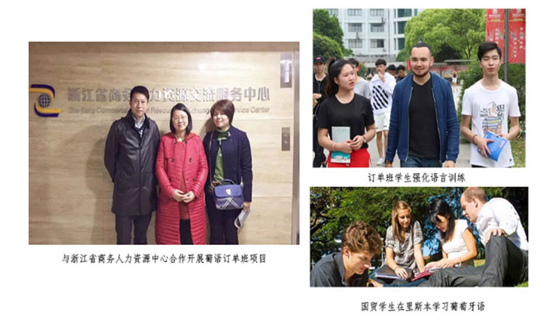 與浙江省商務(wù)人力資源服務(wù)公司合作共辦葡萄牙語訂單班,專業(yè)學(xué)生經(jīng)過一年的葡萄牙語培訓(xùn)有機會前往葡萄牙里斯本大學(xué)就讀本科提升學(xué)歷,也可以到安哥拉、巴西等葡語國家從事國際貿(mào)易工作。