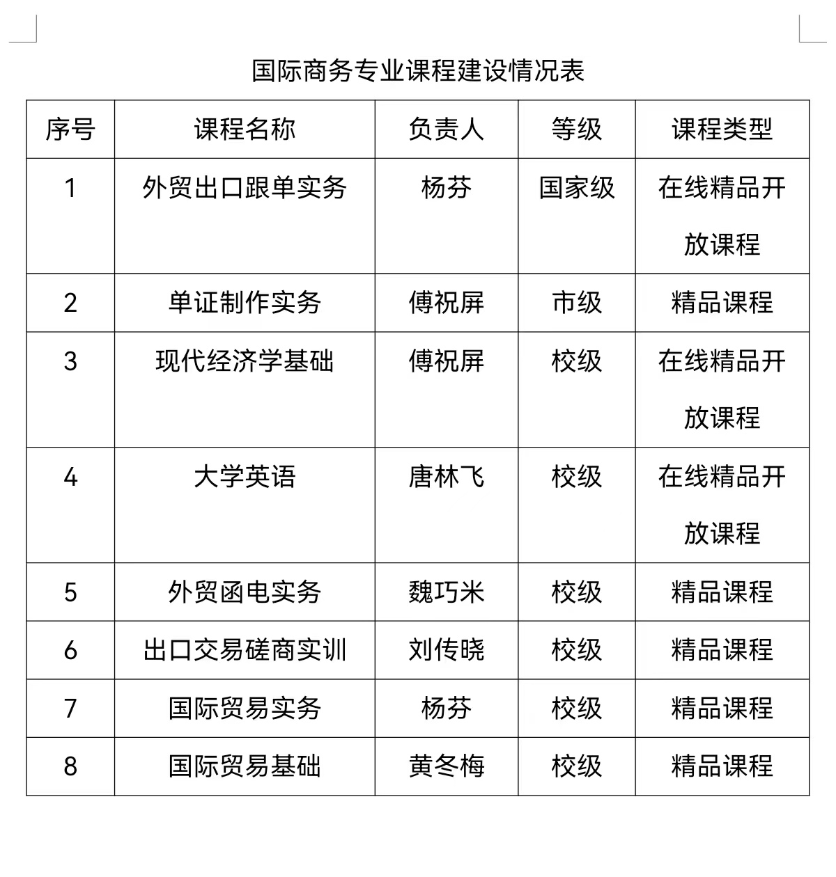 專業(yè)構(gòu)建了基于外貿(mào)崗位工作流程的課程體系,建成了有一定特色的省級、市級、校級校企合作、產(chǎn)教融合的精品課程,涵蓋了專業(yè)主要核心課程,課程資源開放共享,滿足學(xué)生