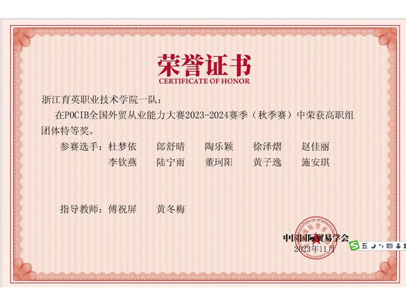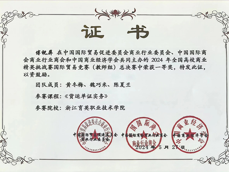 ●2024年全國外貿(mào)從業(yè)技能大賽團體特等獎、一等獎;