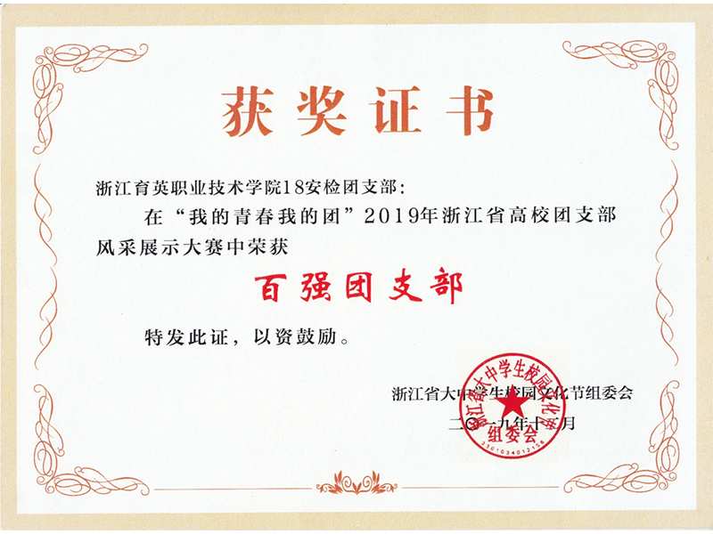 18安檢團(tuán)支部榮獲浙江省“百強(qiáng)團(tuán)支部”榮譽(yù)稱號(hào)